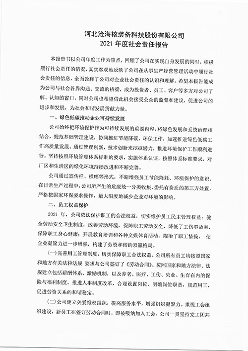 2021年社會(huì)責(zé)任報(bào)告-河北滄海
